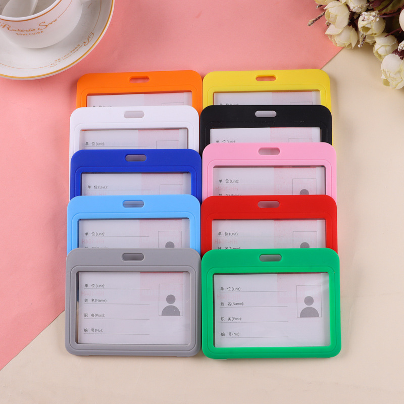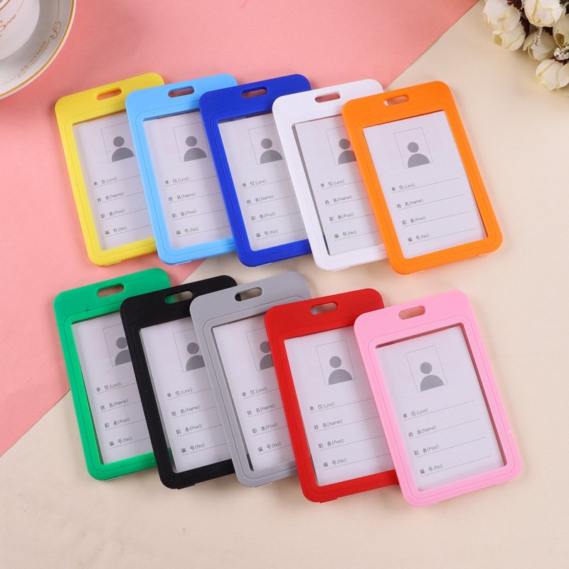 多色社員身分カードカバー卸売りバスカード学生証食事カード保護カードクリップ胸カード保護カバー