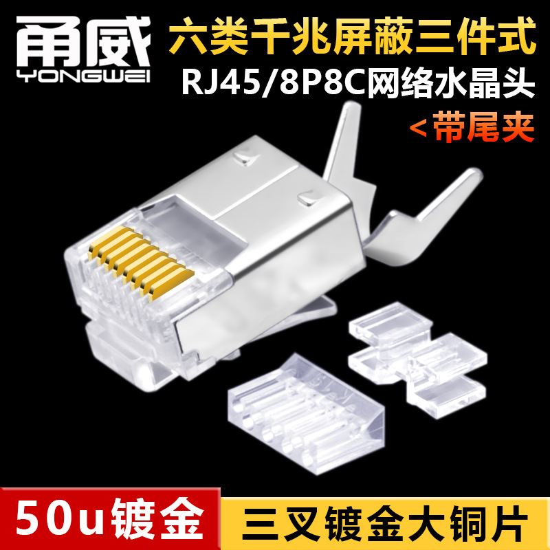 甬威三件式六類ギガビットシールド水晶ヘッドテールクリップrj45/8p8. 8ネットワークcat6ネットワークケーブルコネクタ
