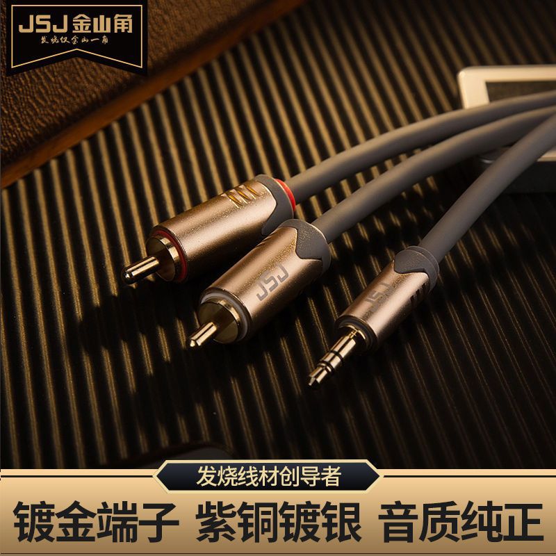 JSJ紫銅メッキ銀3.5一分二オーディオケーブル3.5mm回転2rca蓮花携帯電話パソコンスピーカーアンプ