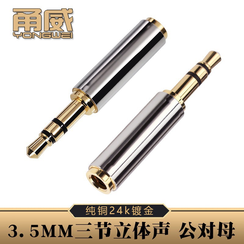 永威 純銅金メッキ3.5mmオス-メス変換コネクタ 3.5オス-3.5メス3段ステレオ変換プラグ