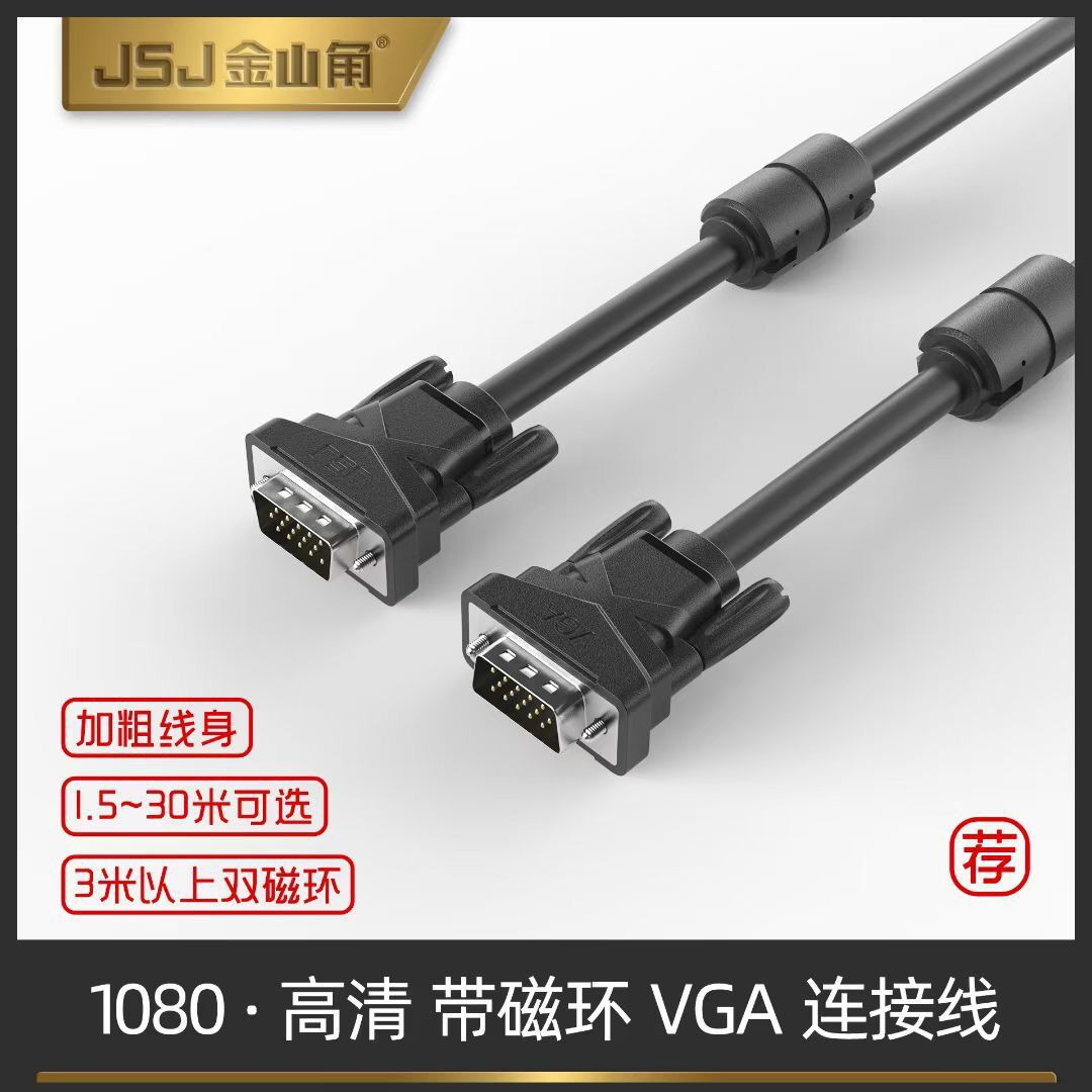 JSJ金山角vga線3 6/3 9純銅線芯公対公/公対母双磁気環耐ノイズ高清線