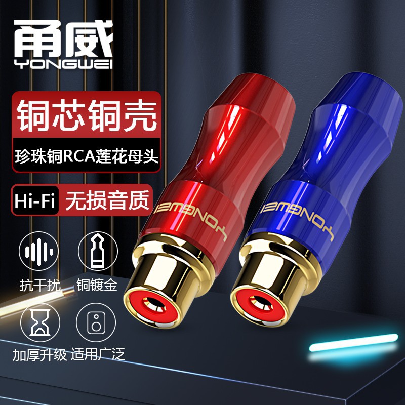 Yongwei 全銅金メッキ RCA ロータスメスプラグ AV オーディオおよびビデオケーブル同軸ケーブル溶接ヘッドオーディオ RL チャンネルヘッド