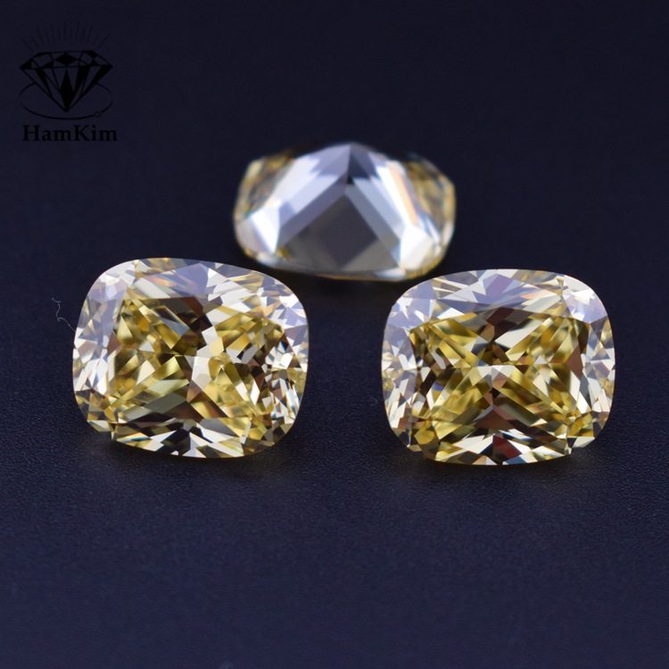 5aガチョウの黄色の肥の長方形の枕の形のジルコンの裸の石のCZ宝石のアクセサリーは石の梧州のメーカーの直接販売を象眼します。