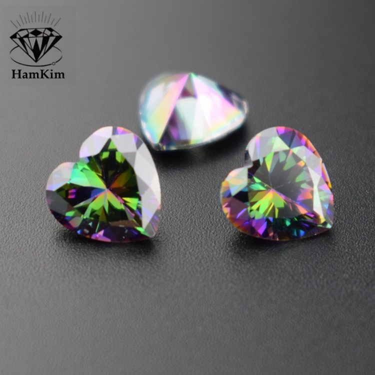 カラフルなジルコニウムの幻の色のハート型のジルコンの裸の石のCZの宝石のめっきの色のアクセサリーの象眼は石の漳州のメーカーの直接販売を配合します。