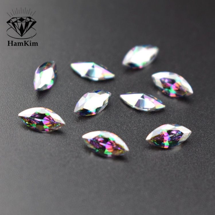 七色馬眼ジルコン裸石3*6-6 * 12mm尖底ドリルメッキカラー宝石裸石ジュエリーモザイク石