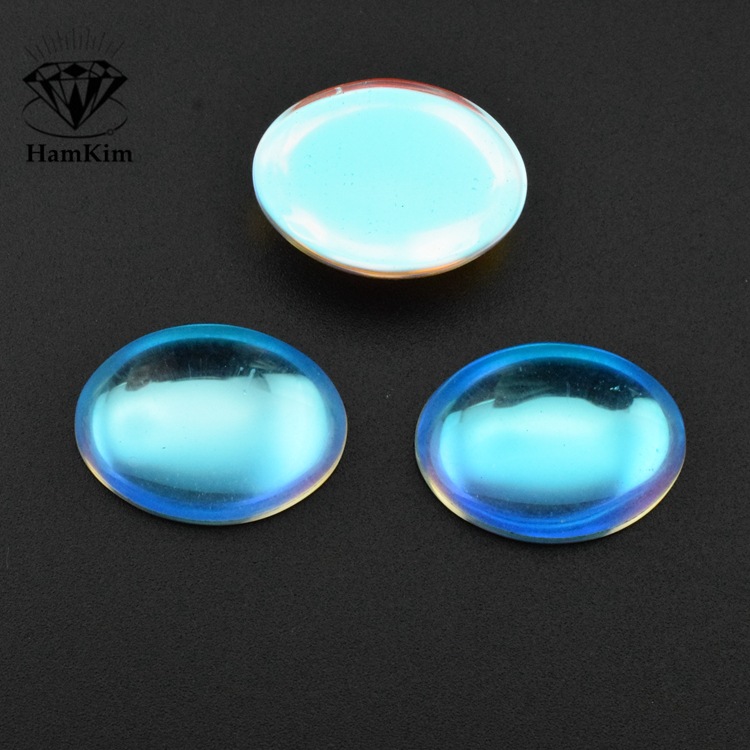 Ab彩卵形月光石楕円形平底宝石ガラスステッチ石指輪ピアス工芸品モザイク