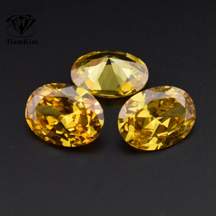 黄金色の卵形ジルコン裸石楕円形cz宝石ジルコン梧州合成宝石宝石
