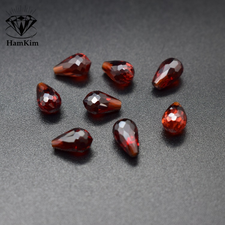 ザクロ紅立体水滴形縦穴6*10mmヒヤシンスジルコン裸石cz宝石漳州ジルコンメーカーモザイク