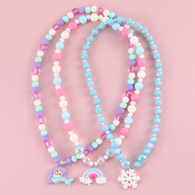 スポット卸売り欧米のネックレスが国境を越えて流行している樹脂人魚虹雪花ペンダントネックレス子供
