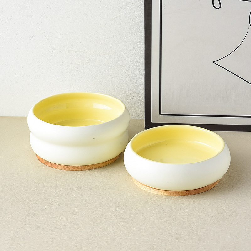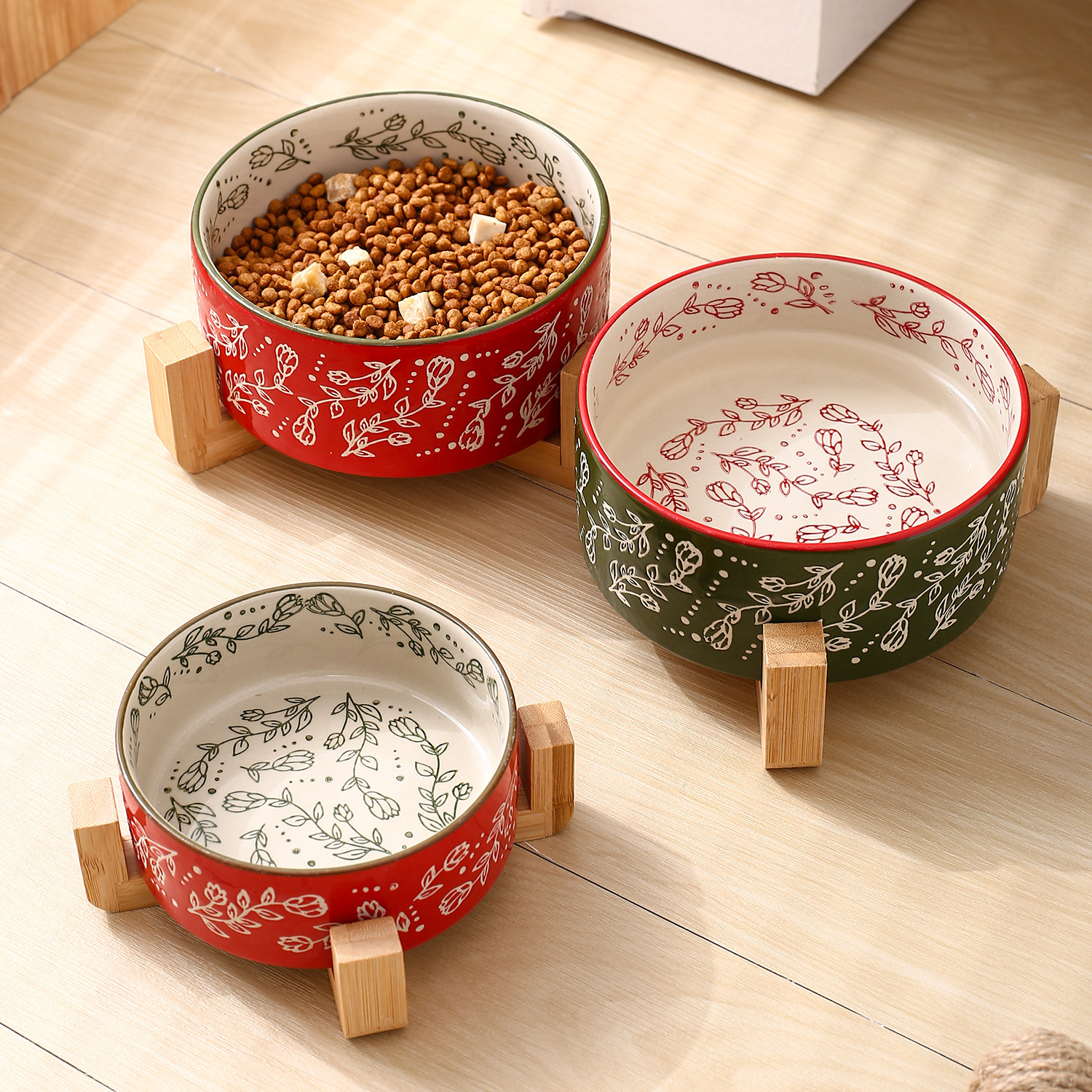 クリエイティブホームエスニックスタイルストレートボウル木製スタンド付きペットボウルセラミックボウル猫ボウル犬ボウル猫水飲みボウル犬ボウル