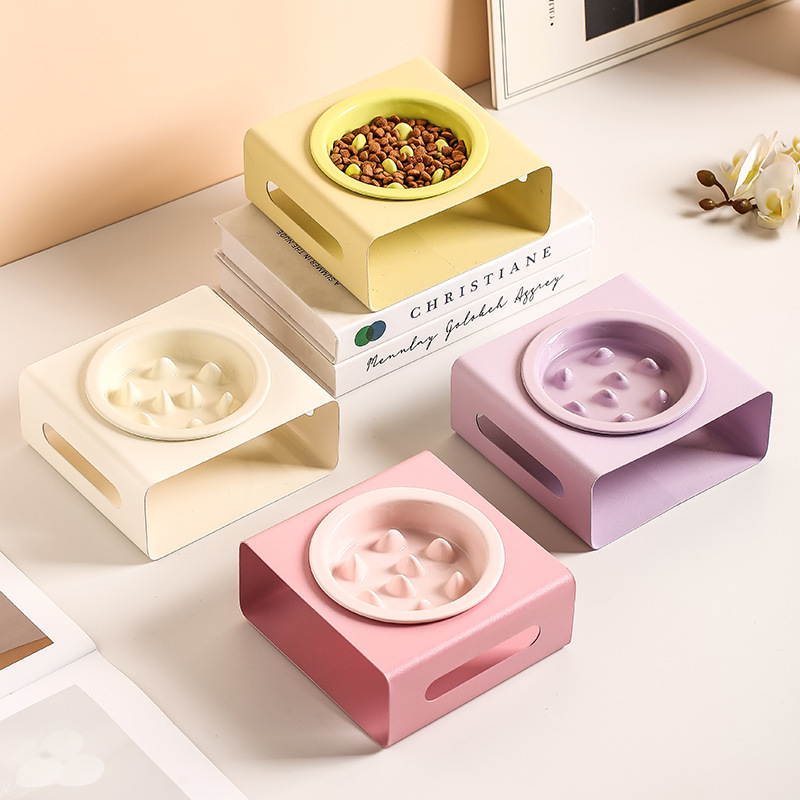 新しい正方形の猫ボウルラックダイニングテーブルスローフードボウル犬ボウル猫フードボウルセラミックペットボウル水ボウル食品漏れ防止ネックプロテクター
