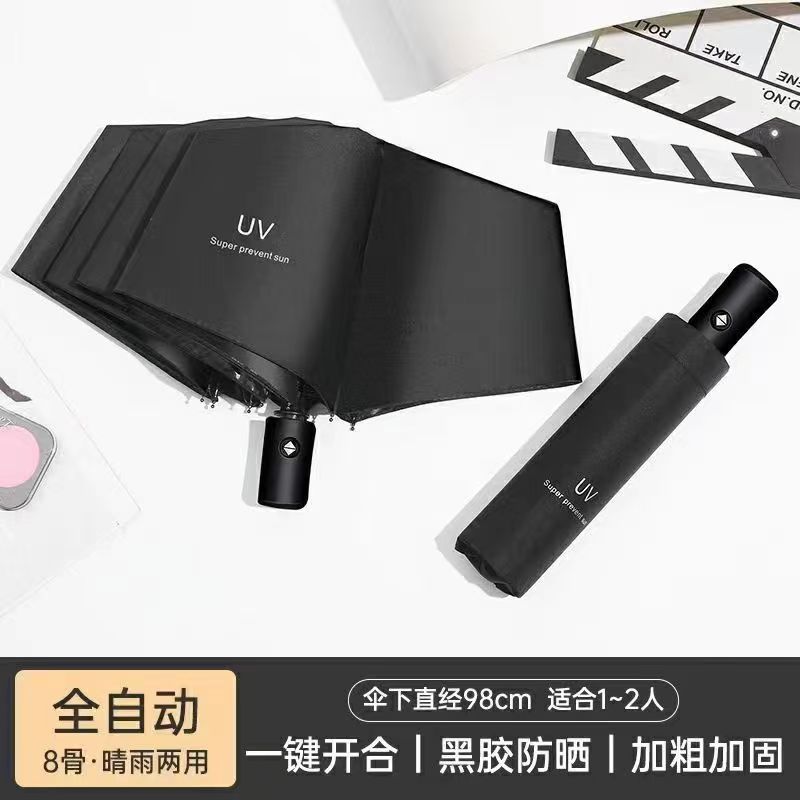 家庭用全自動両用傘折りたたみ傘黒色プラスチック抗紫外線日傘厚く強化された強化された耐風性