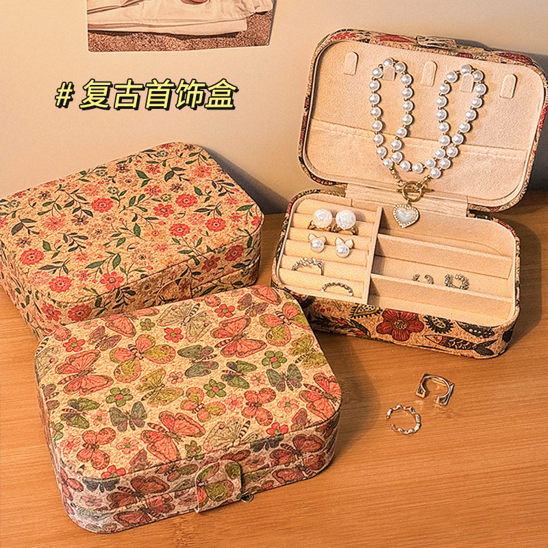 新しい中国風のレトロな新しい中国風の大容量ポータブルジュエリーボックスイヤリングリングネックレスハンドジュエリー収納ボックス小