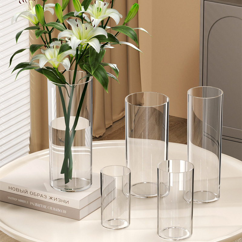透明ストレート大型プラスチック花瓶卸売り客間着地富貴竹生花水培花器置物ins風