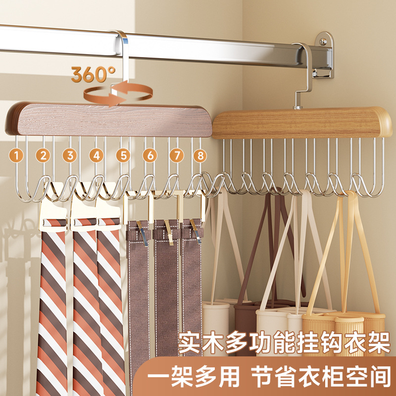 木製ストラップハンガー多機能下着ベスト収納神器家庭用寮実木フック波ハンガー
