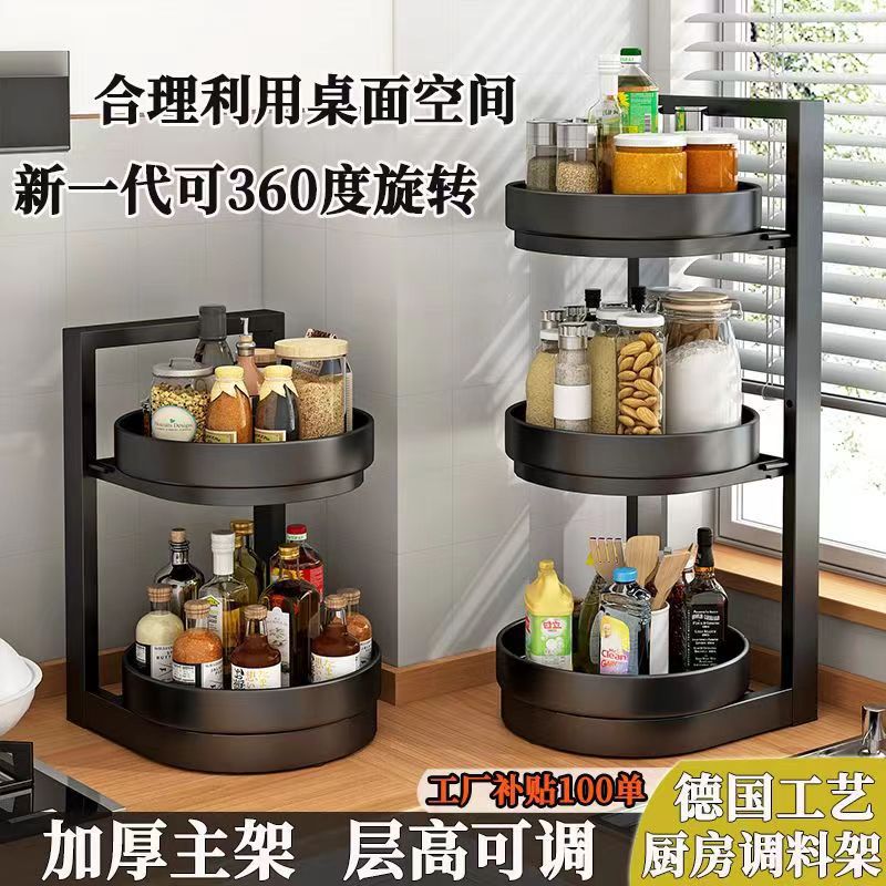 キッチン調味料棚360回転テーブル棚家庭用油塩味噌汁二重回転調味料棚棚棚