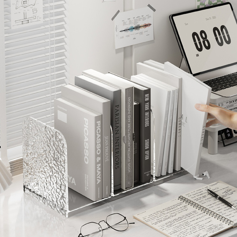 デスクの棚の透明な本棚のアクリルファイルの本棚の事務室の学生は本を置いて棚を収納します。