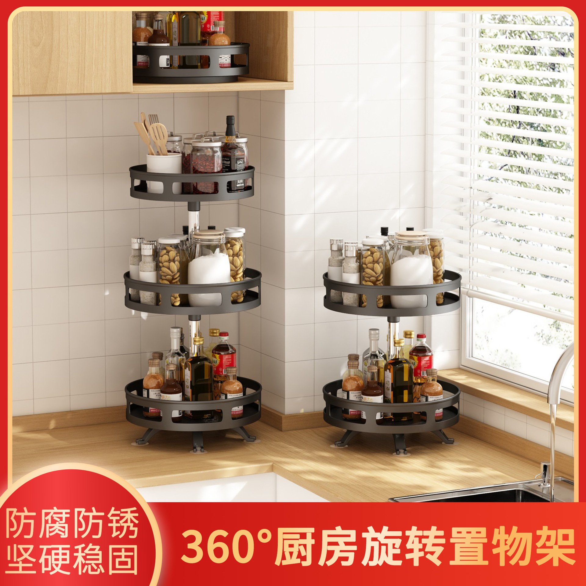 回転収納ラック家庭用キッチン調味料ラック伸縮可能多層テーブル回転調味料ラック