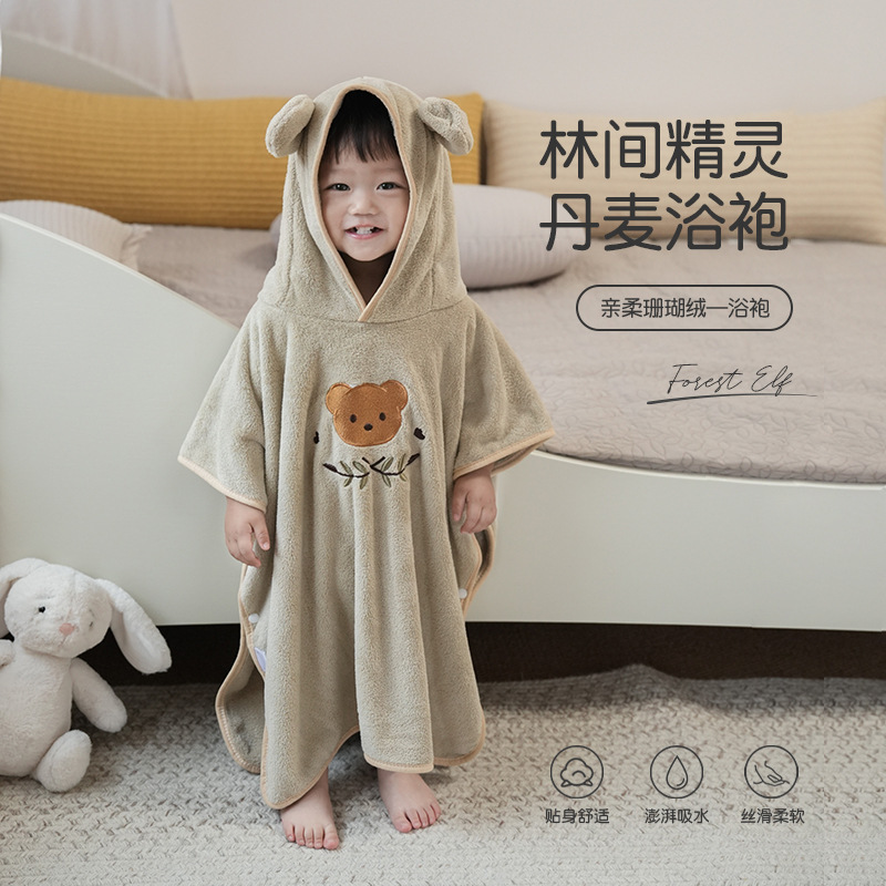 刺繍のサンゴの毛のマントの帽子のバスタオルの卸売りの子供のバスローブの赤ちゃんは純綿より吸水します。