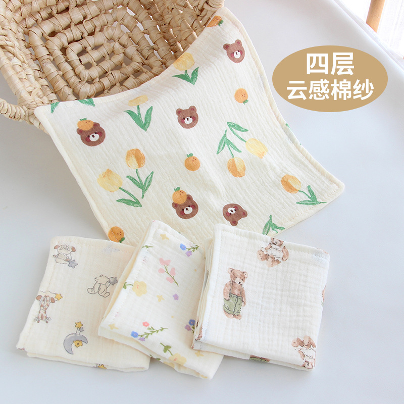 Ins風四層ガーゼよだれタオル柔らかい赤ちゃんの小さなタオルかわいい子供タオルハンカチ赤ちゃん洗顔タオル