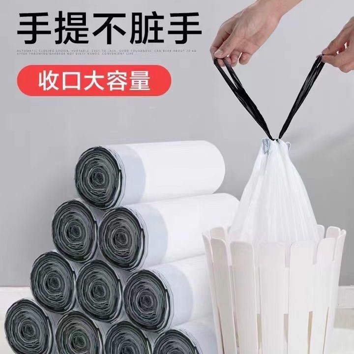 ゴミ袋厚め巾着式自動収納ポケット手持ち式巾着家庭厨房学生寮用ビニール袋