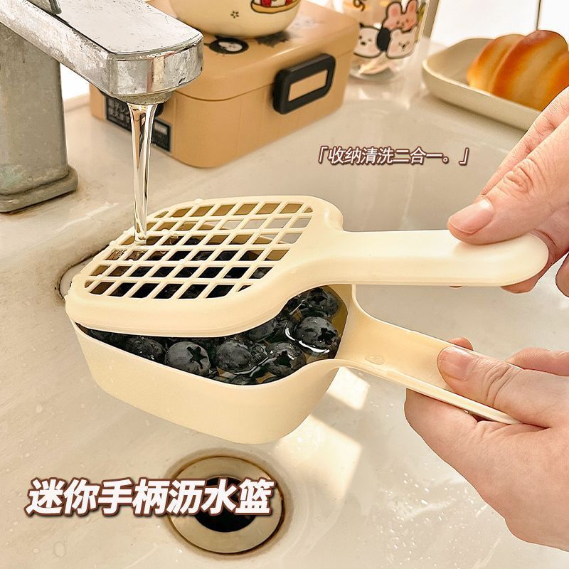 手持ちの透かし彫りの水切り器の漫画の客間の洗浄かごの台所の細い穴の野菜かごの多機能の四角形は蓋があって簡単です。