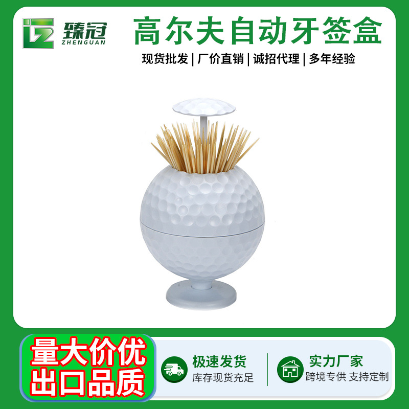 クリエイティブなゴルフつまようじホルダー、つまようじボックス、自動つまようじ出し、時間と労力を節約、取り外し可能なボディで洗いやすい