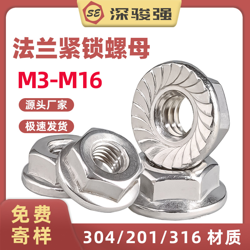 ステンレス304/316/201フランジナット六角ロック歯付き滑り止めナット細歯反歯卸売り