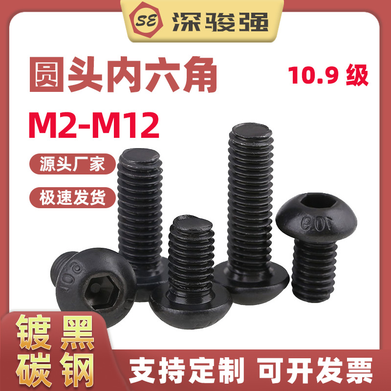 10.9級丸頭六角ネジ炭素鋼黒色丸頭六角ボルトM3-M12