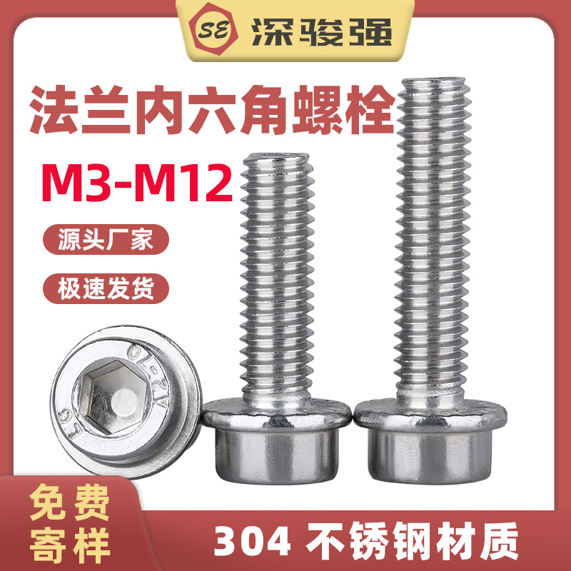 304ステンレスフランジ内六角ねじフランジ歯付き滑り止め円筒頭六角ボルトm6m8m10mm