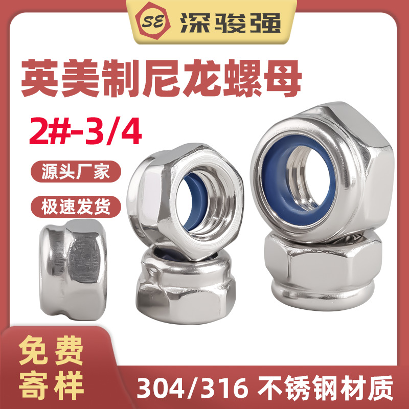 美製304ステンレスナイロン防松ナット316ナット美標防脱セルフロックナット卸売り