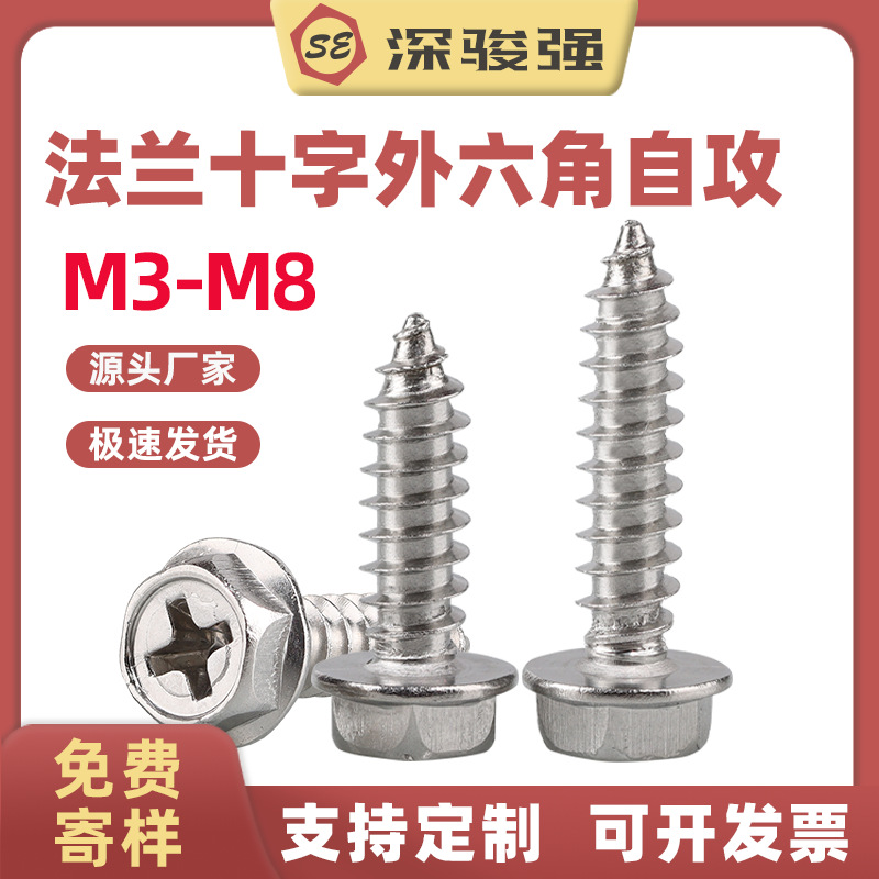 304 ステンレス鋼フランジ外側六角十字凹穴セルフタッピングネジチップテールパッド付き木ネジ M3M4M5M6M8