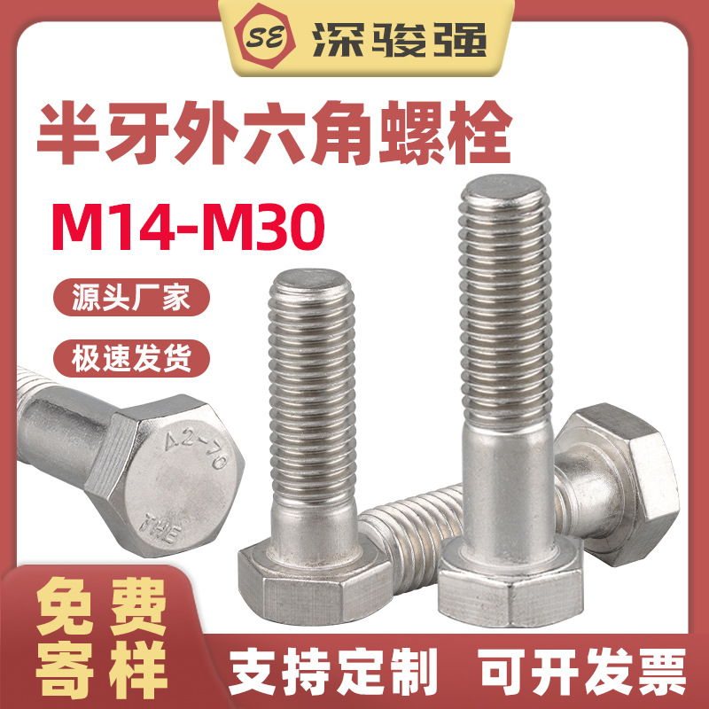 304ステンレス半歯外六角ボルトdin931粗棒半歯ねじ卸売りM14-M30