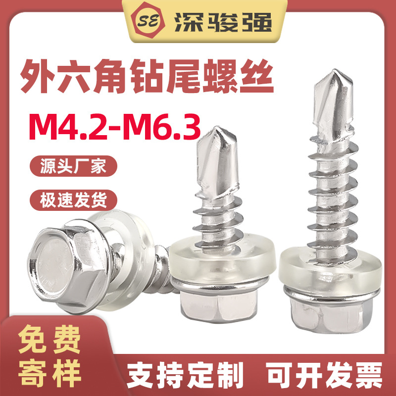 410ステンレス六角アリねじ自攻ドリル華司ゴムリング付きドリル尾m4.2m4.8m5.5m6.3