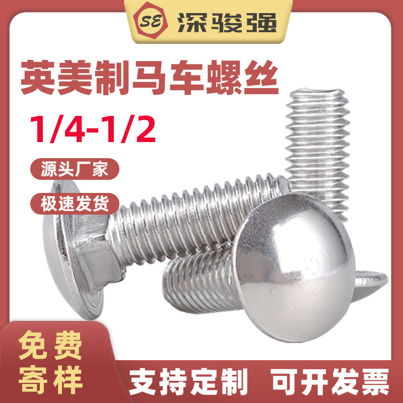304ステンレス美製馬車ボルト平頭角首ねじ1/4-5/16-18 3/8-16 1/2