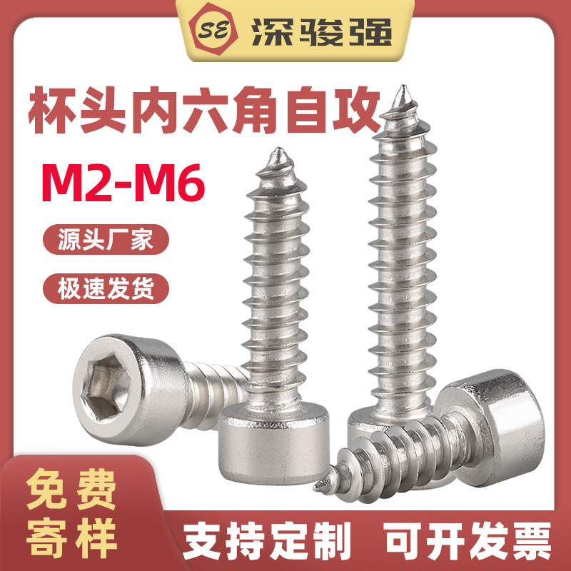 304ステンレスカップヘッド内六角タッピングねじ円筒先先先先ねじ卸売りm 2m 3m 4m 5m 6