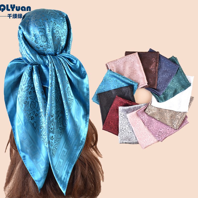 2023年夏の新型純色シワ色丁90大方巾シルクタオル卸売り模造シルクマフラー現在のソース