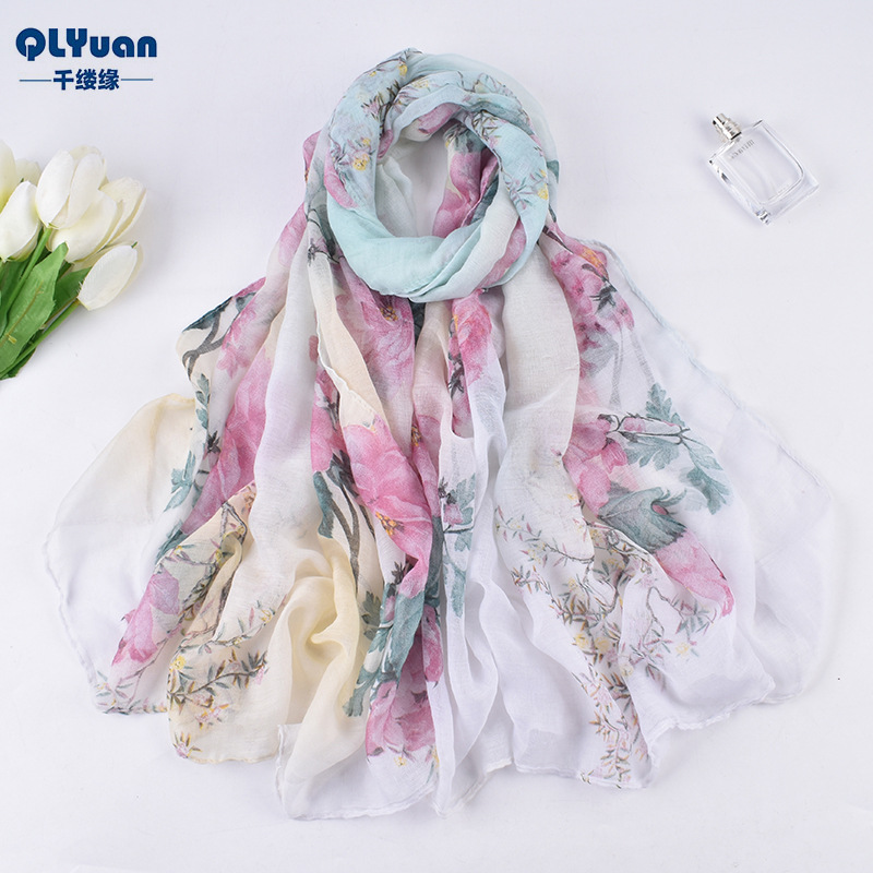 秋冬の新型の気質は花のプリントの優良品質のバリのマフラーの女性の通気性の薄いガーゼのタオルに似合います。