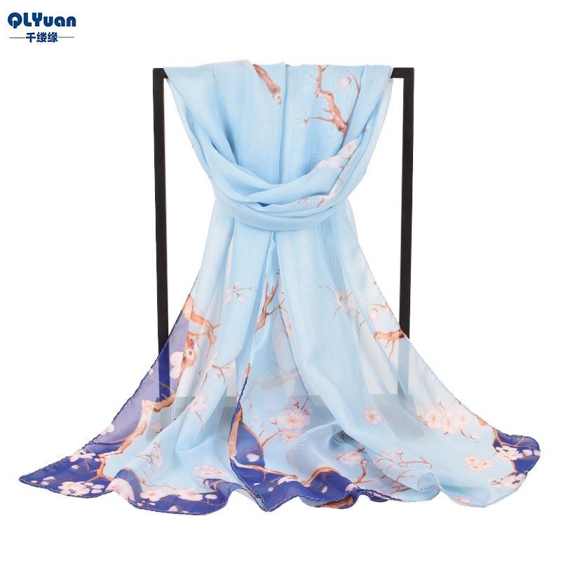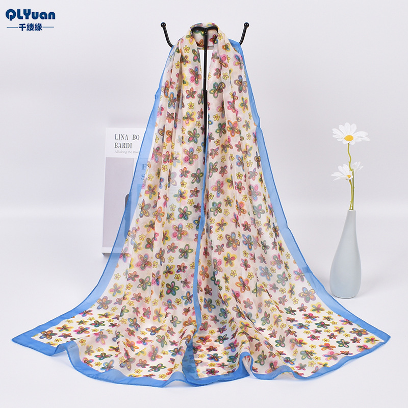 国境を越えた春夏の新型50*150ファッションの甘いプリントシフォンのシルクタオルの女性のガーゼの日焼け止めのショールの現物