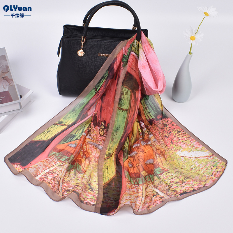 春夏新作50*150個性油絵シフォン多色シルクタオル女性ガーゼ日焼け止めストール現物