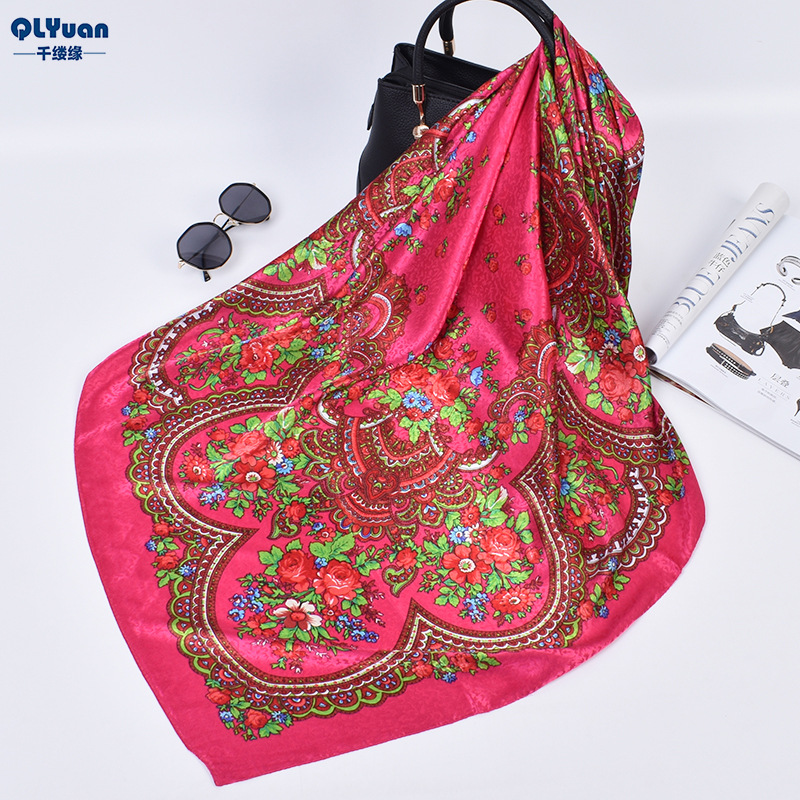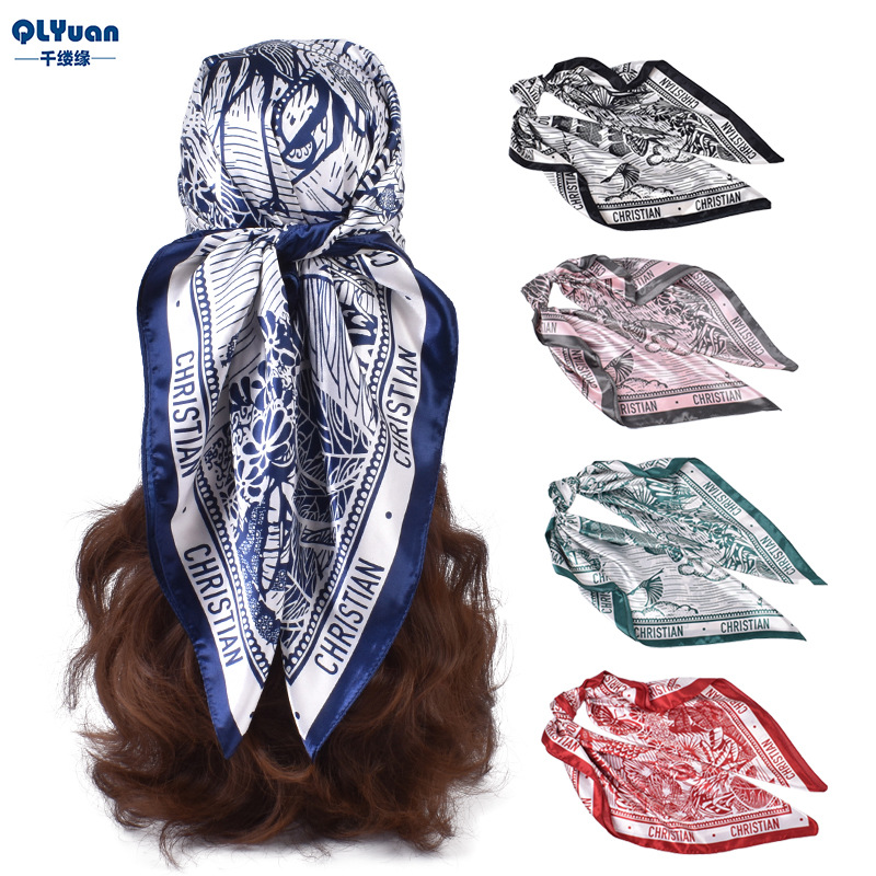 夏の新しいレトロなパターンサテン大正方形スカーフ卸売ファッションヨーロッパとアメリカの模擬シルクスカーフ