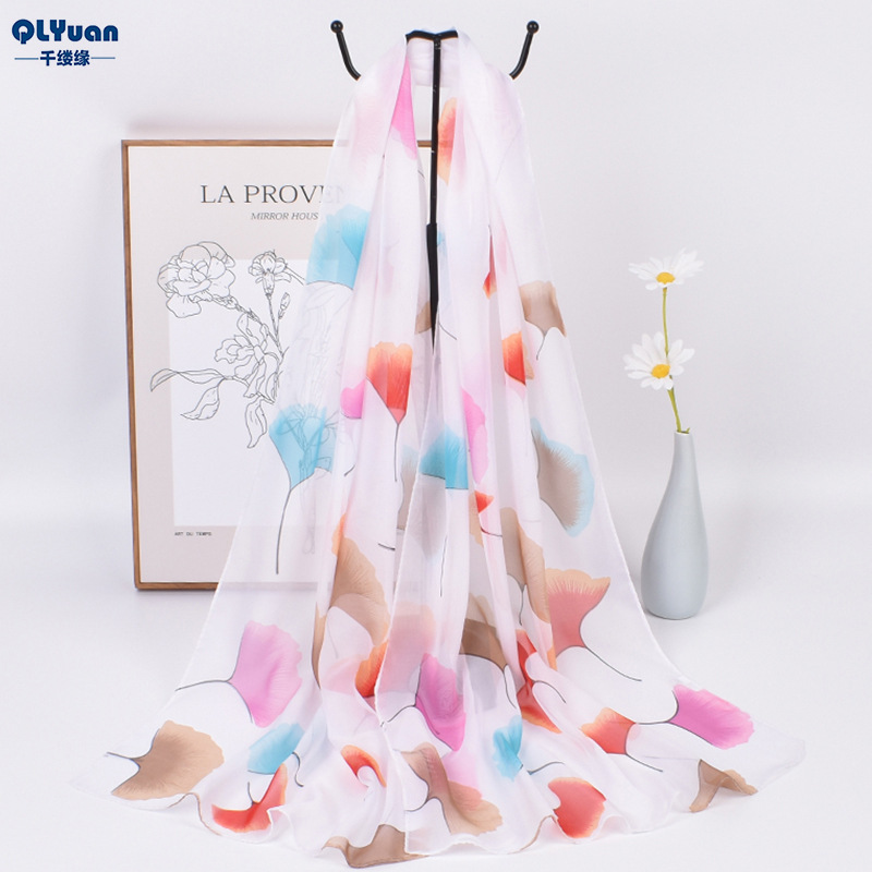 国境を越えた春夏の新型50*155優雅なイチョウの葉のシフォンの多色のシルクタオルの卸売りの女性のガーゼの日焼け止めのショール