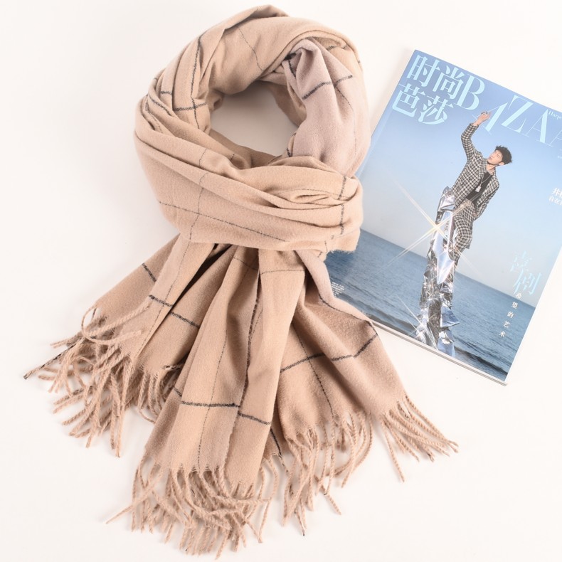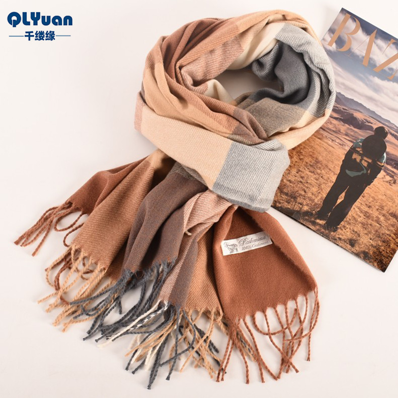 秋冬の新型の格子はカシミヤのマフラーの女性の韓国版の綿麻の保温のマフラーのストールのファッションの現物の卸売りをまねます。