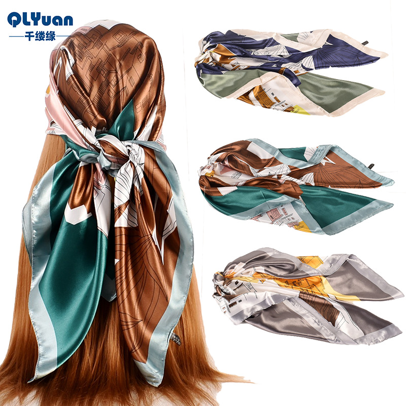 秋冬の新型欧米ファッションの新しいシルクサテン70cmの幾何学的なスカーフ