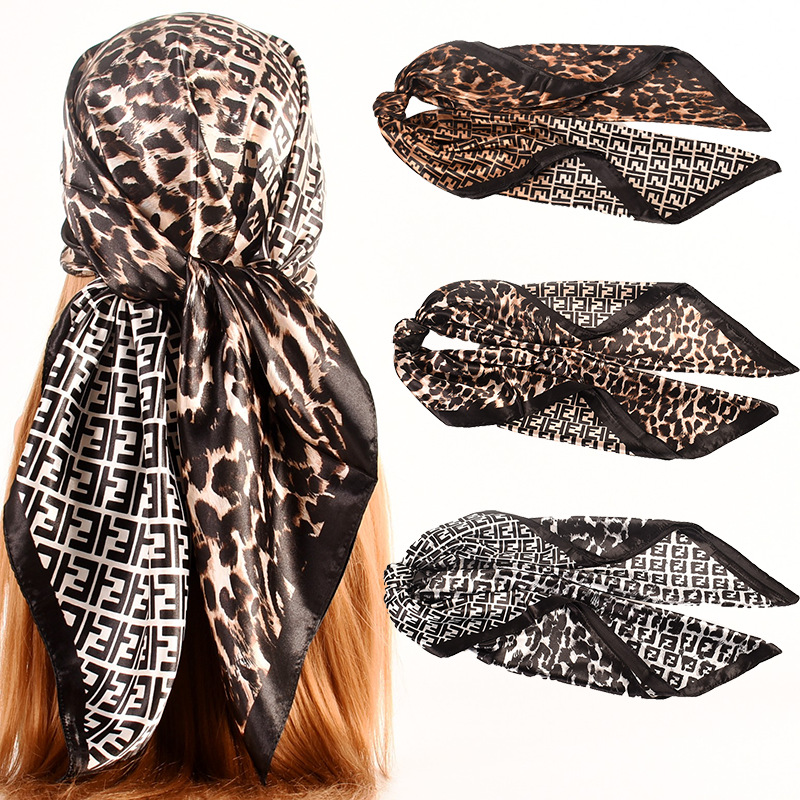 2023年欧米ファッション新型シルクサテン70*70角シルクタオル豹柄シルクタオル卸売り材質は柔らかい