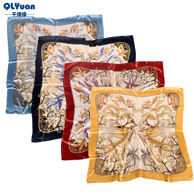 秋冬新作欧米ファッション新シルクサテン70cm花卉大腰果方シルクタオル卸売りファッションマフラー現物