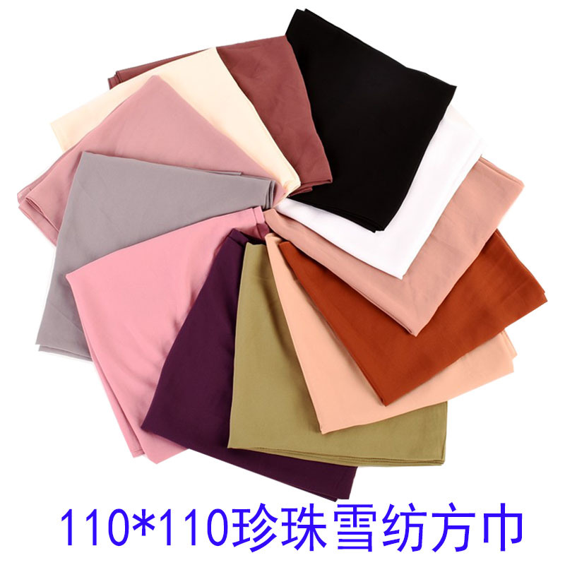 秋冬の新しい純色の単色の真珠のシフォンのマフラーのシルクのスカーフの卸売りのマレーシアの110の大きい方のタオルのガーゼ