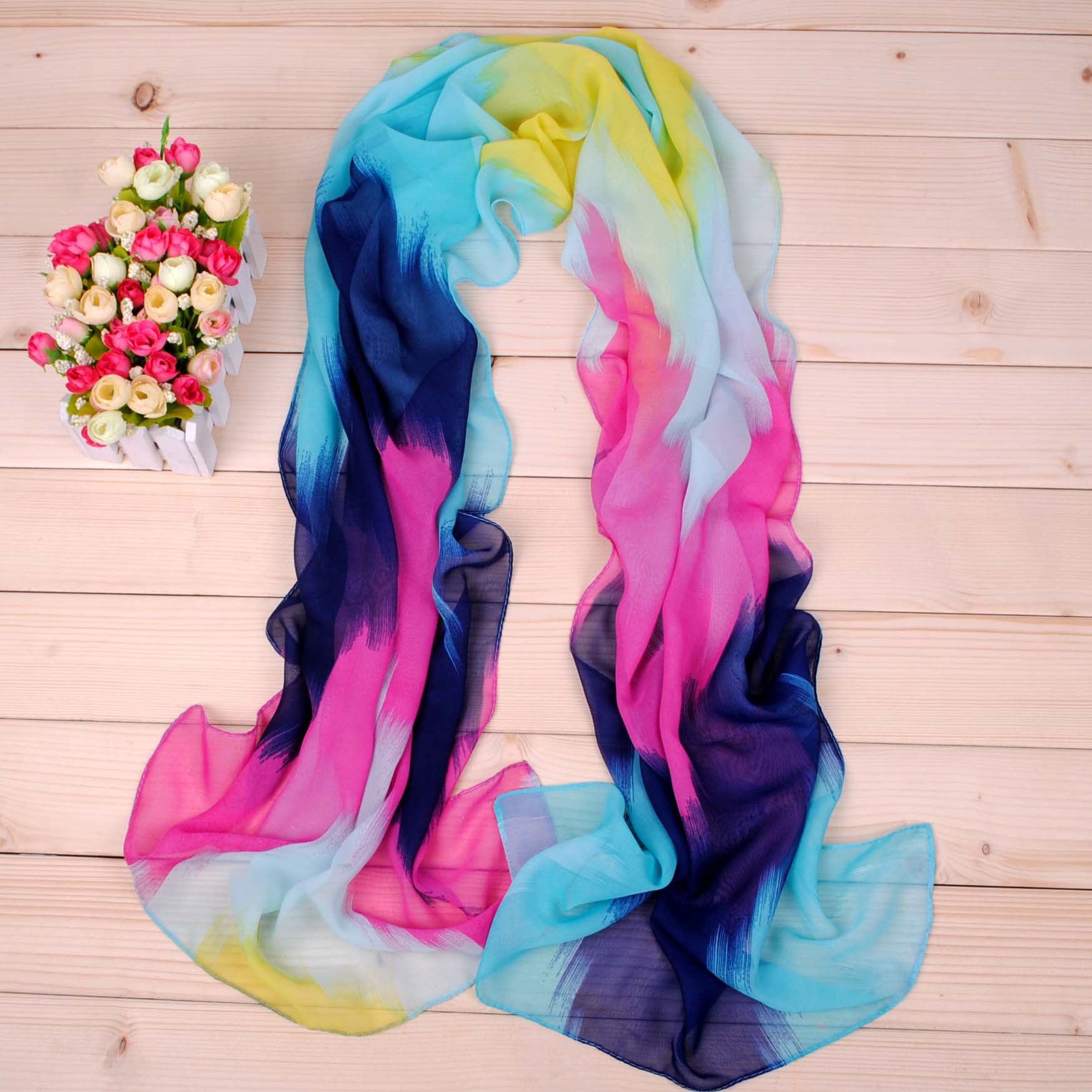 欧米風グラデーションカラー円プリントシフォン長シルクタオル卸売り材質柔らかいファッションマフラー