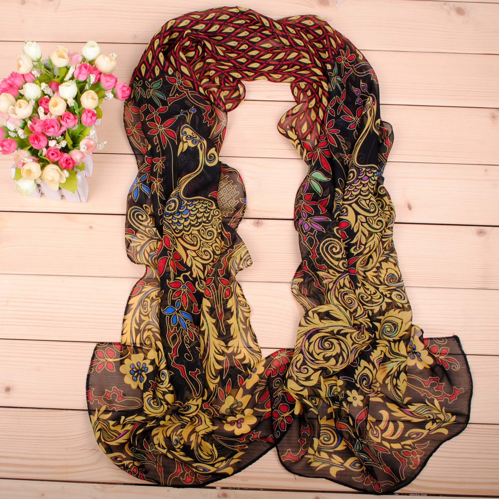 欧米風の新型気質鳳凰シフォンのプリントの長いマフラーは義烏のメーカーの女性のファッションの秋のモデルを卸売りします。