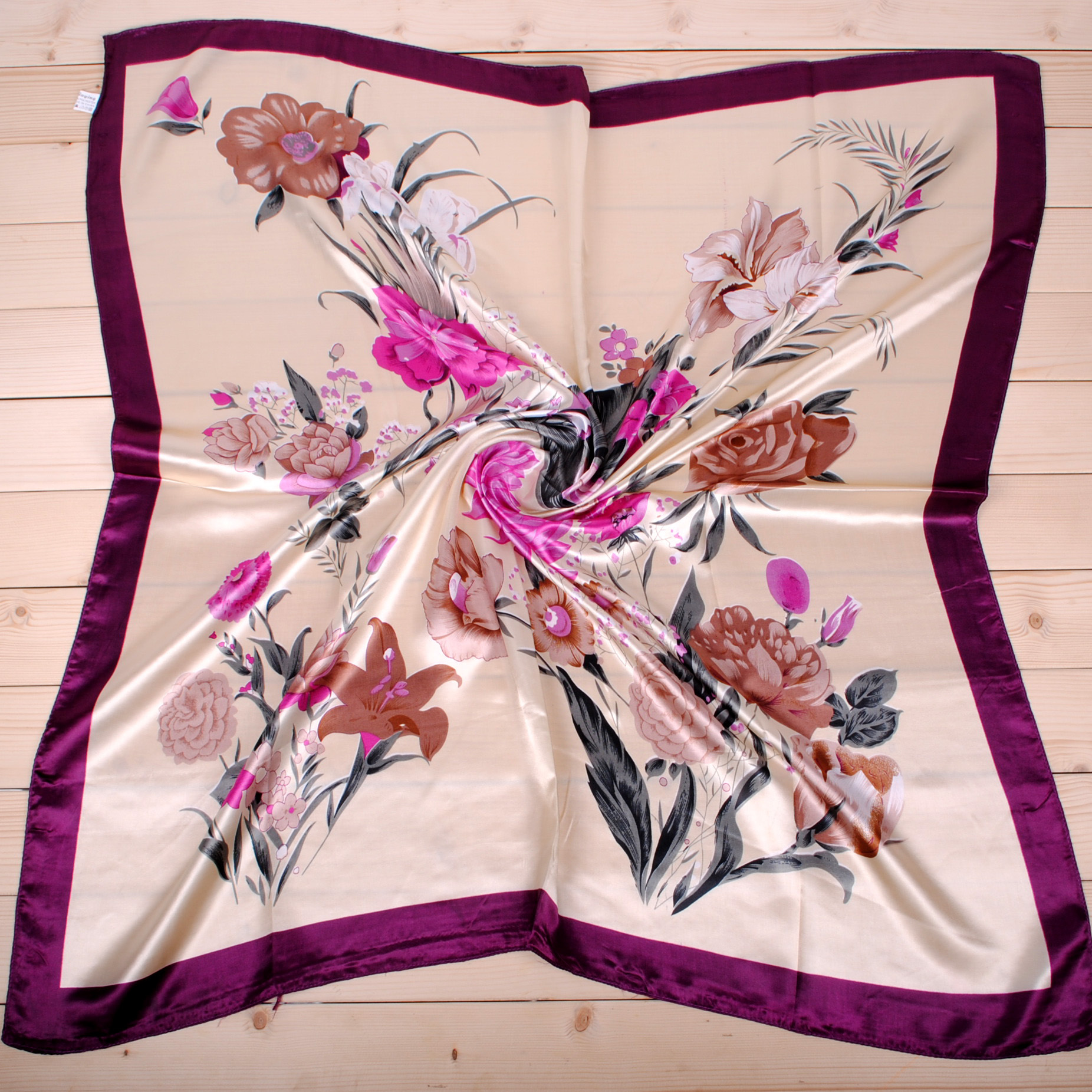 新しい90*90ファッション色丁大方巾プリント樹藤牡丹シルクタオル卸売りscf